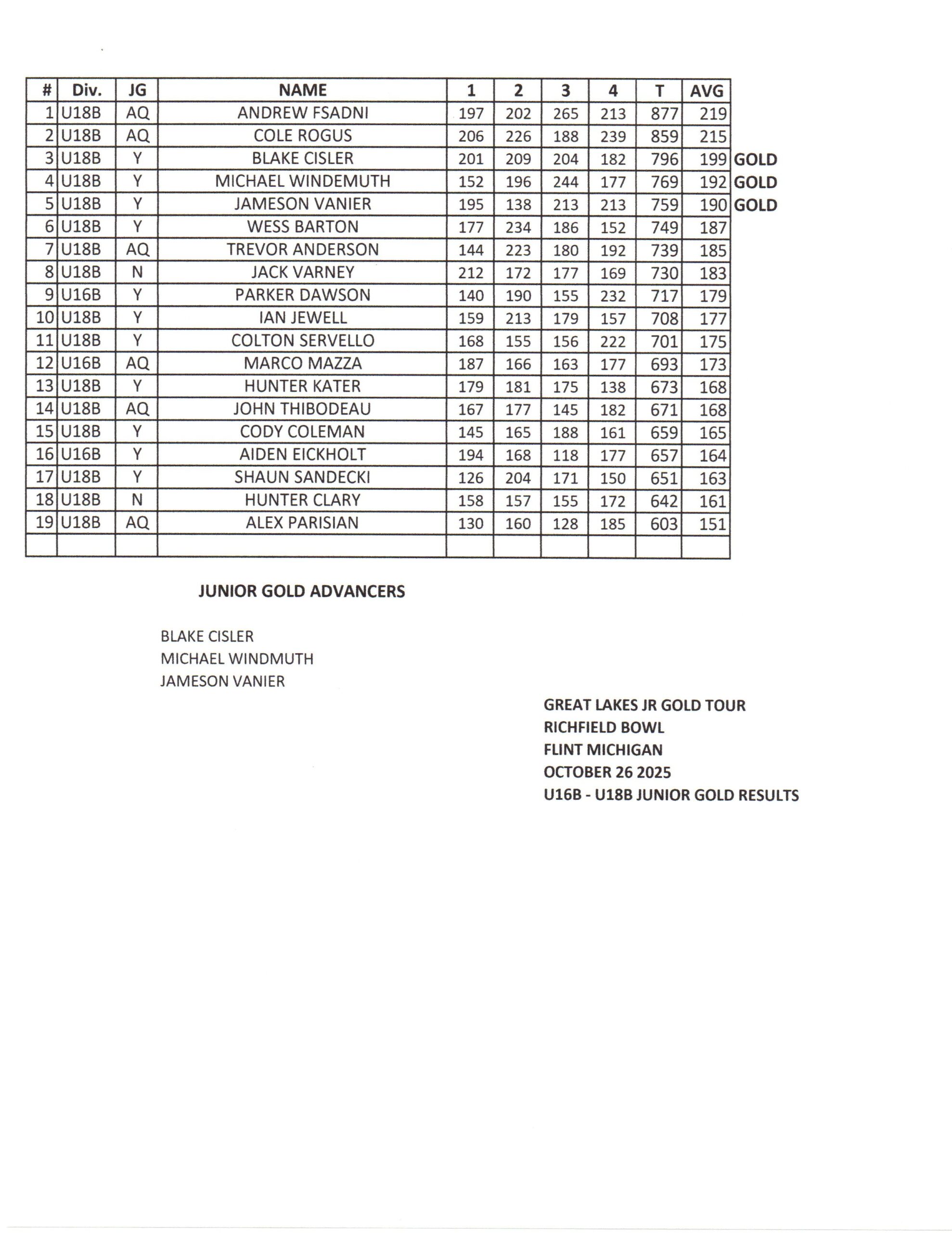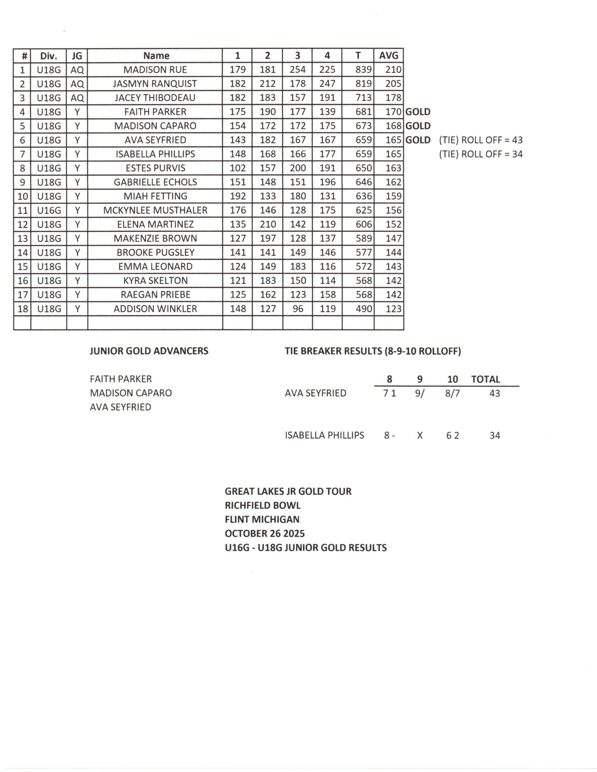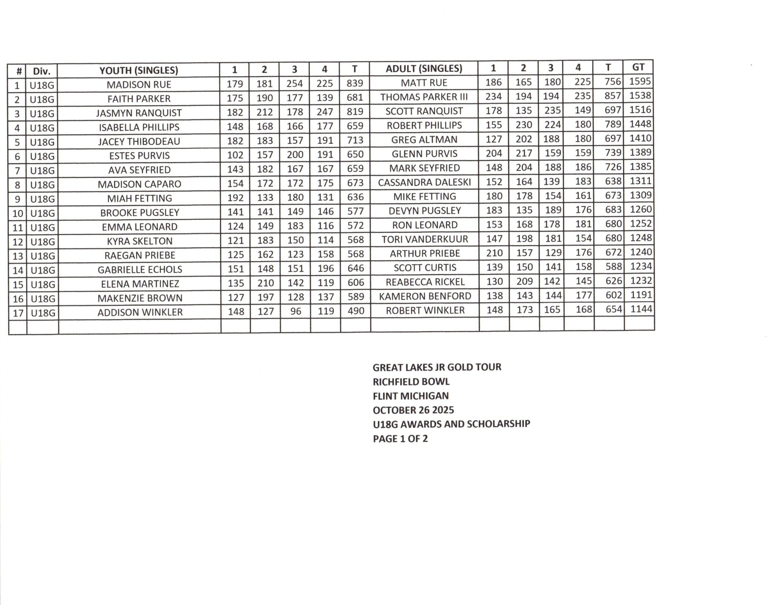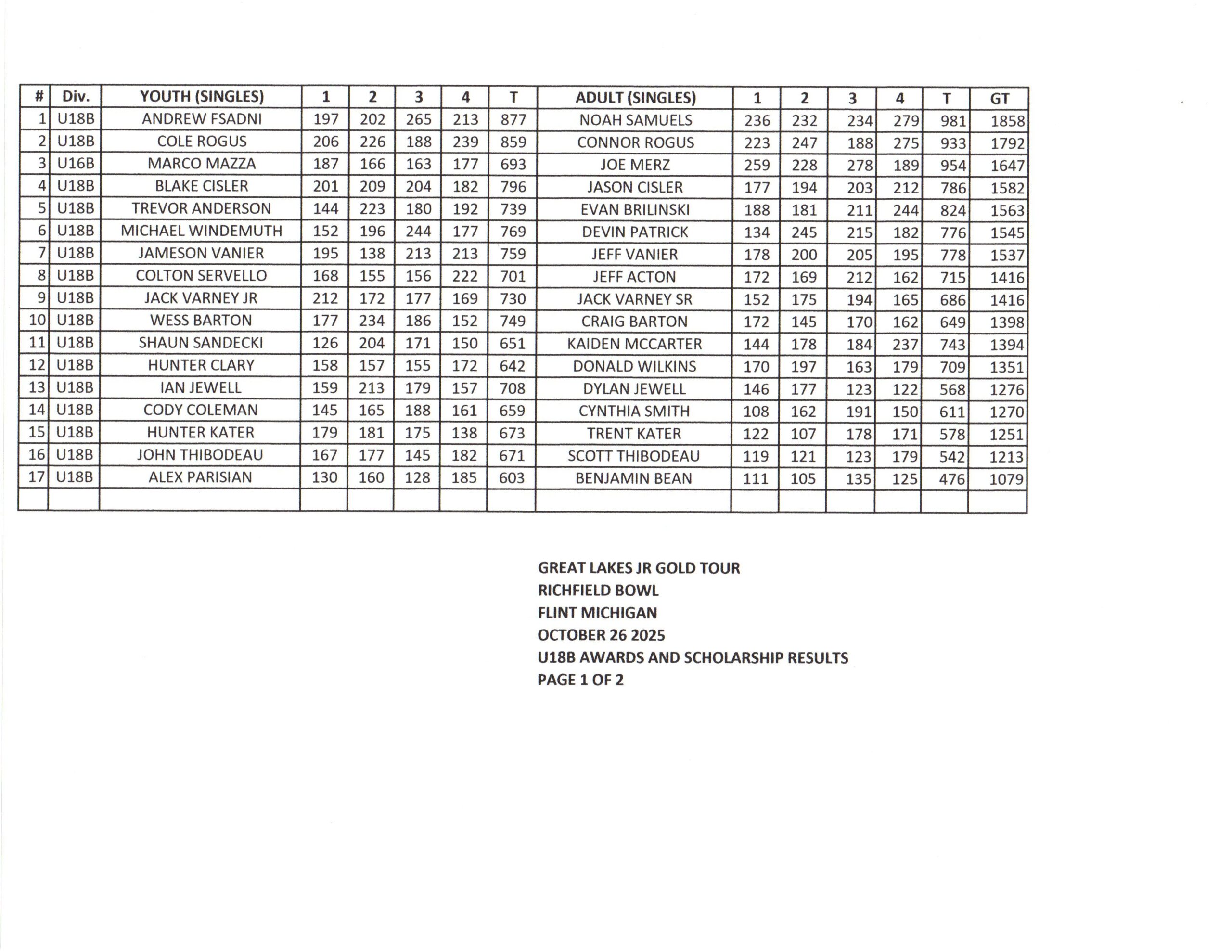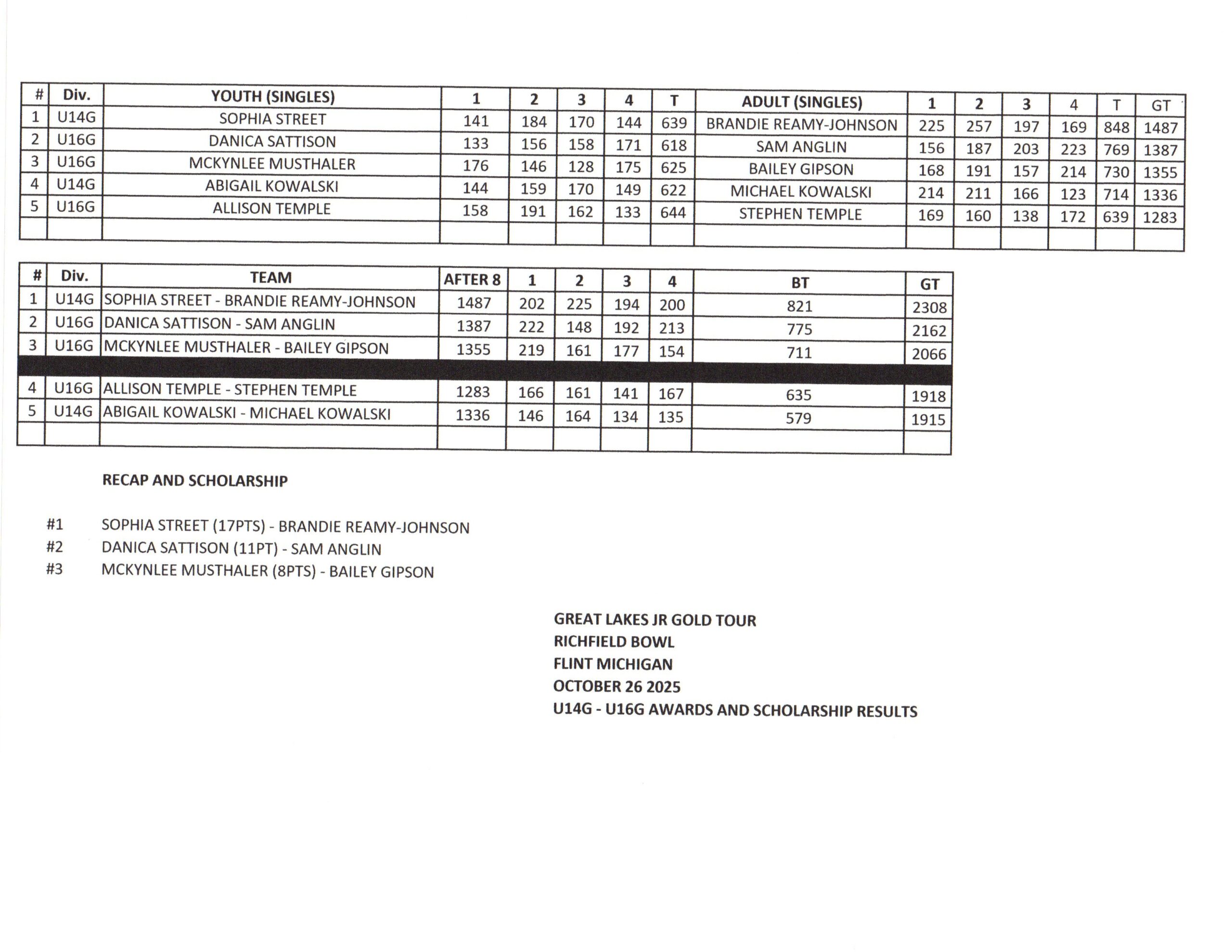 10-26-25 Junior – Adult Richfield Bowl Flint Michigan