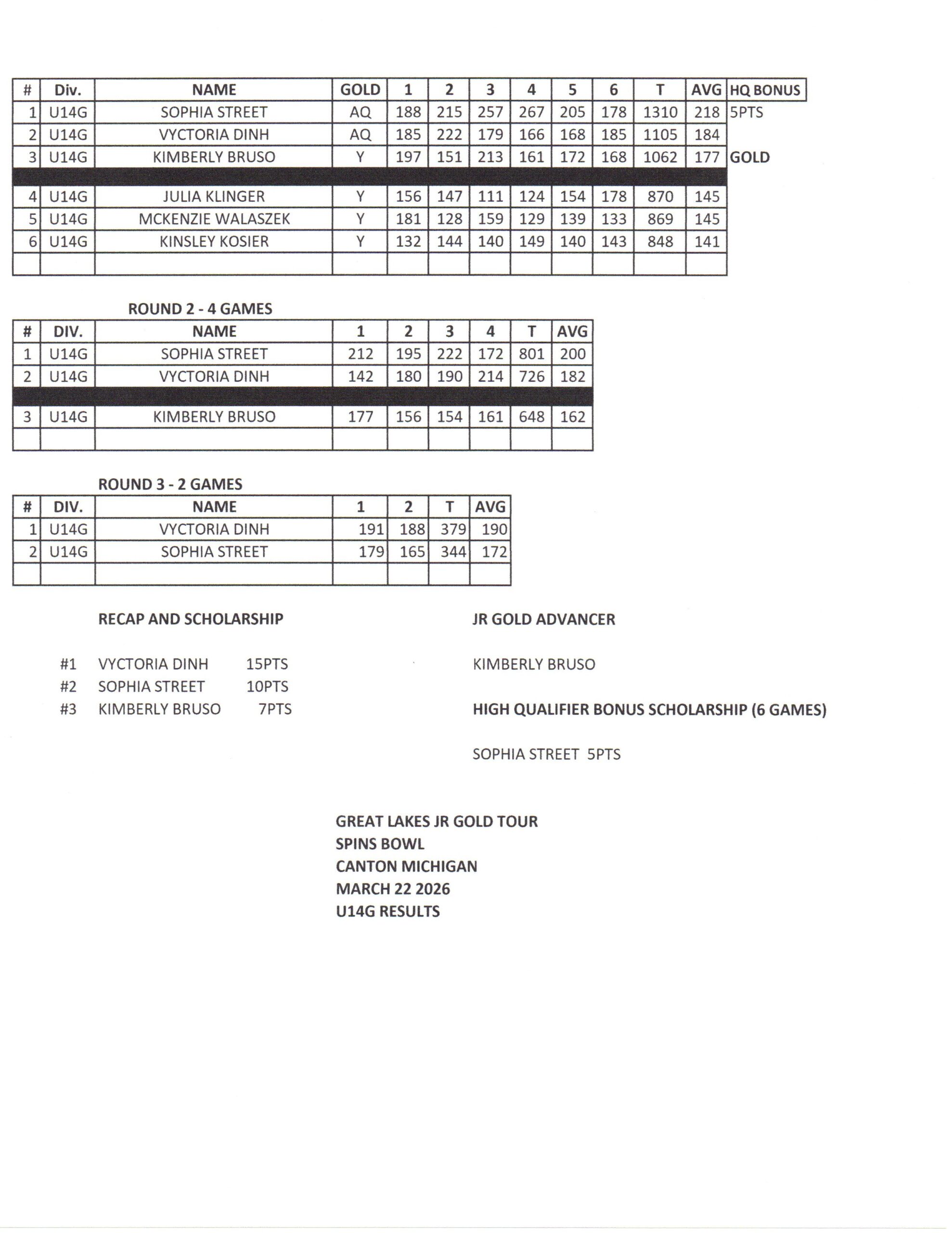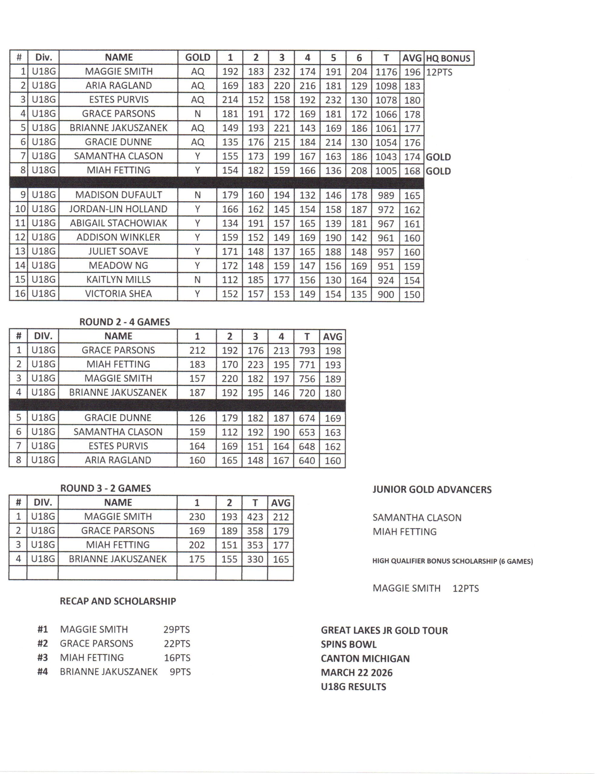 2025-2026 SEASON RESULTS
