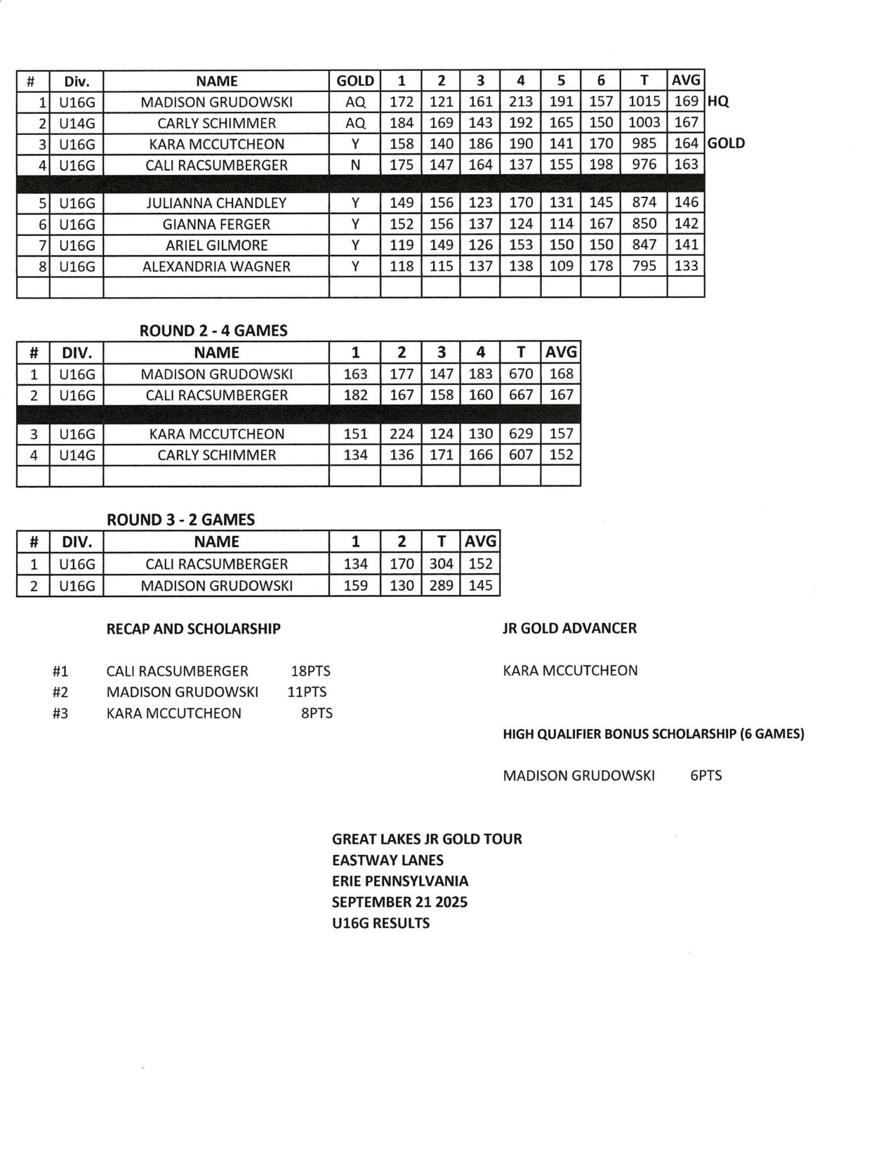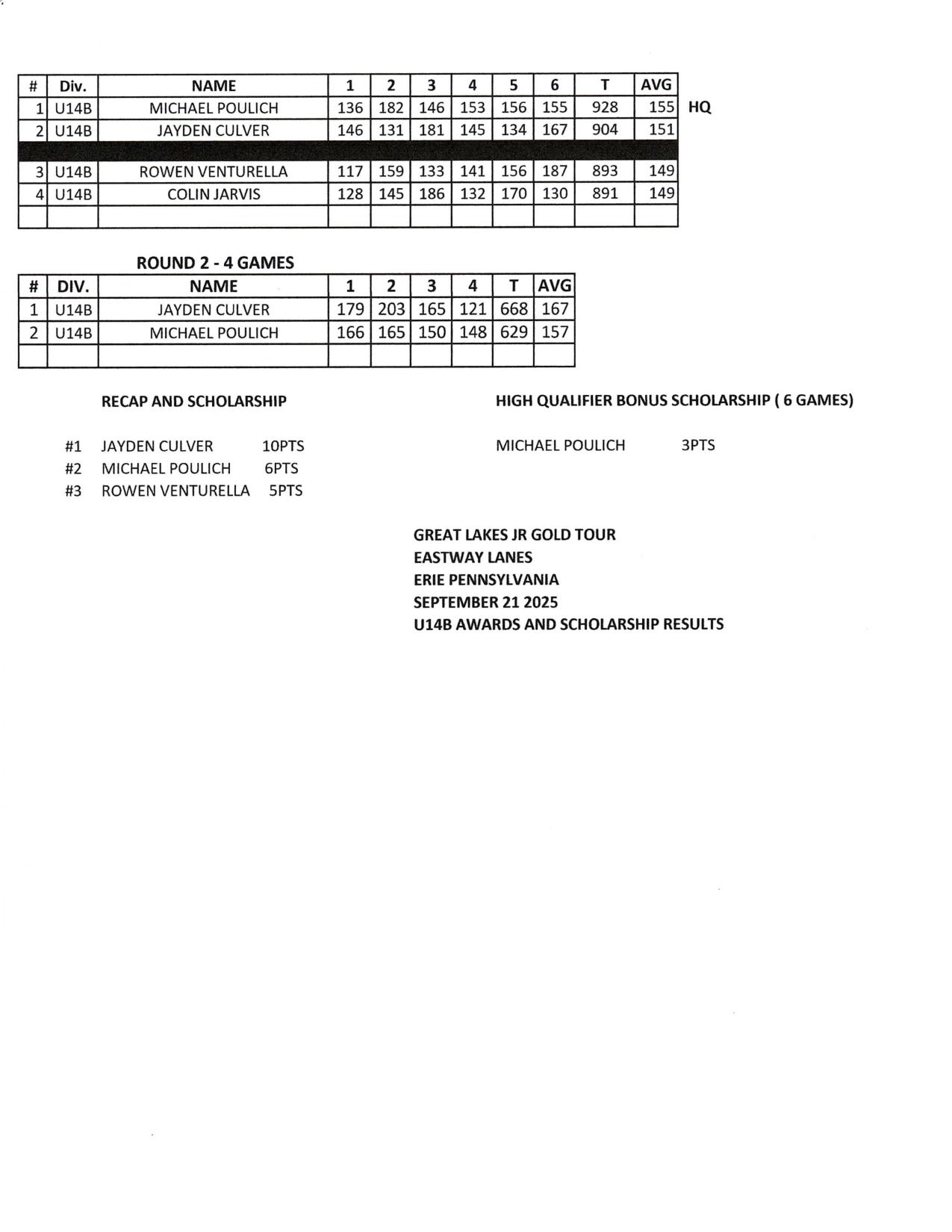 2025-2026 SEASON RESULTS